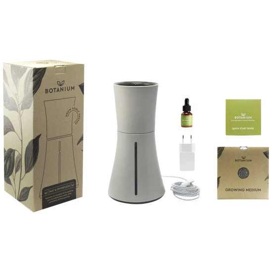 - Ausführung: Selbstbewässernder Topf, Nährmedium, Pipette mit Nährmittel, Anleitung, Stromkabel